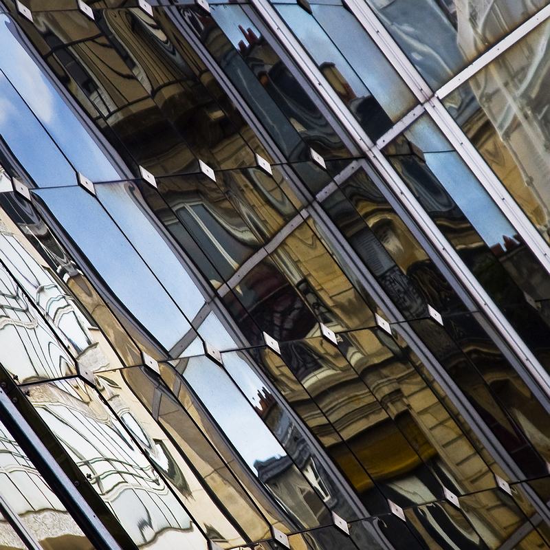 Weerspiegeling in de gevels van Les Halles te Parijs