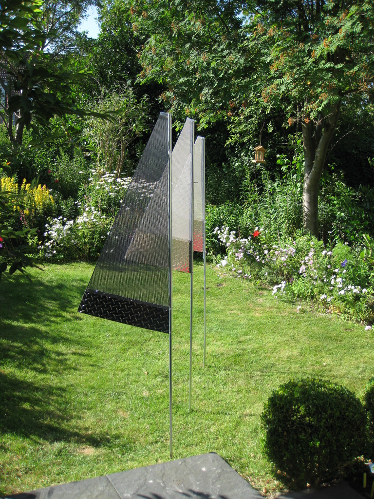 Buitenobject: 'De wind in de zeilen hebben', van metaal. Dit object is gemaakt n.a.v. de expositie: 'Gewonnen en Ontgonnen'