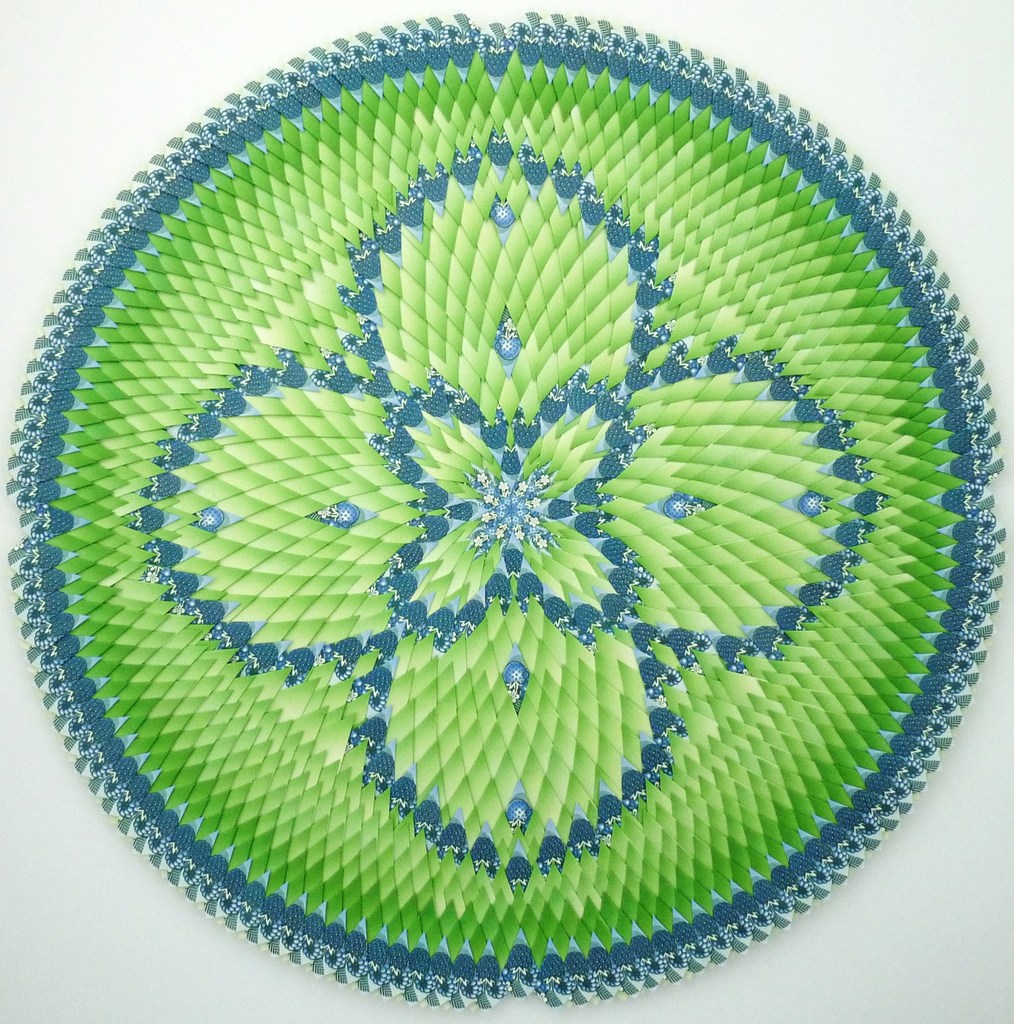 Ik ben geboren in 1945 en ben met het maken van mandala's begonnen toen ik ophield met werken. Ik heb 2 dochters en 5 kleindochters. Sinds ik in april 2008 (samen met mijn dochter en een vriendin)een workshop mandala's van theezakjes heb gevolgd, ben ik er dagelijks mee bezig (als het effe kan). Het is erg rustgevend. Van mijn mandala's maak ik wenskaarten met mandala's en een spreuk of gedachte en die heb ik laten drukken.