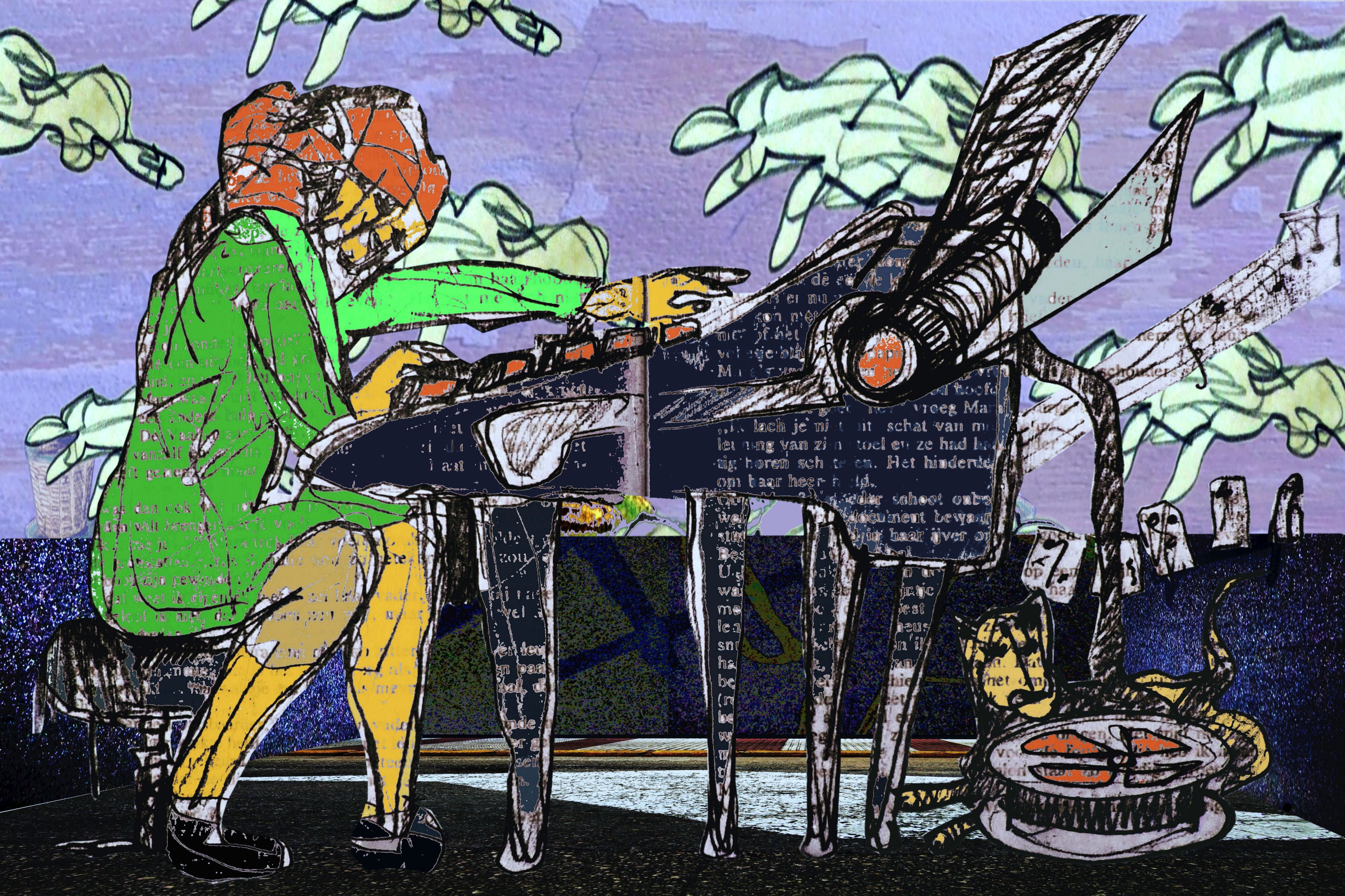 There is always a piano you can play on. Digigrafiek: Digitale bewerkte potlood tekening gedrukt op Hahnemühle Fine Art papier.