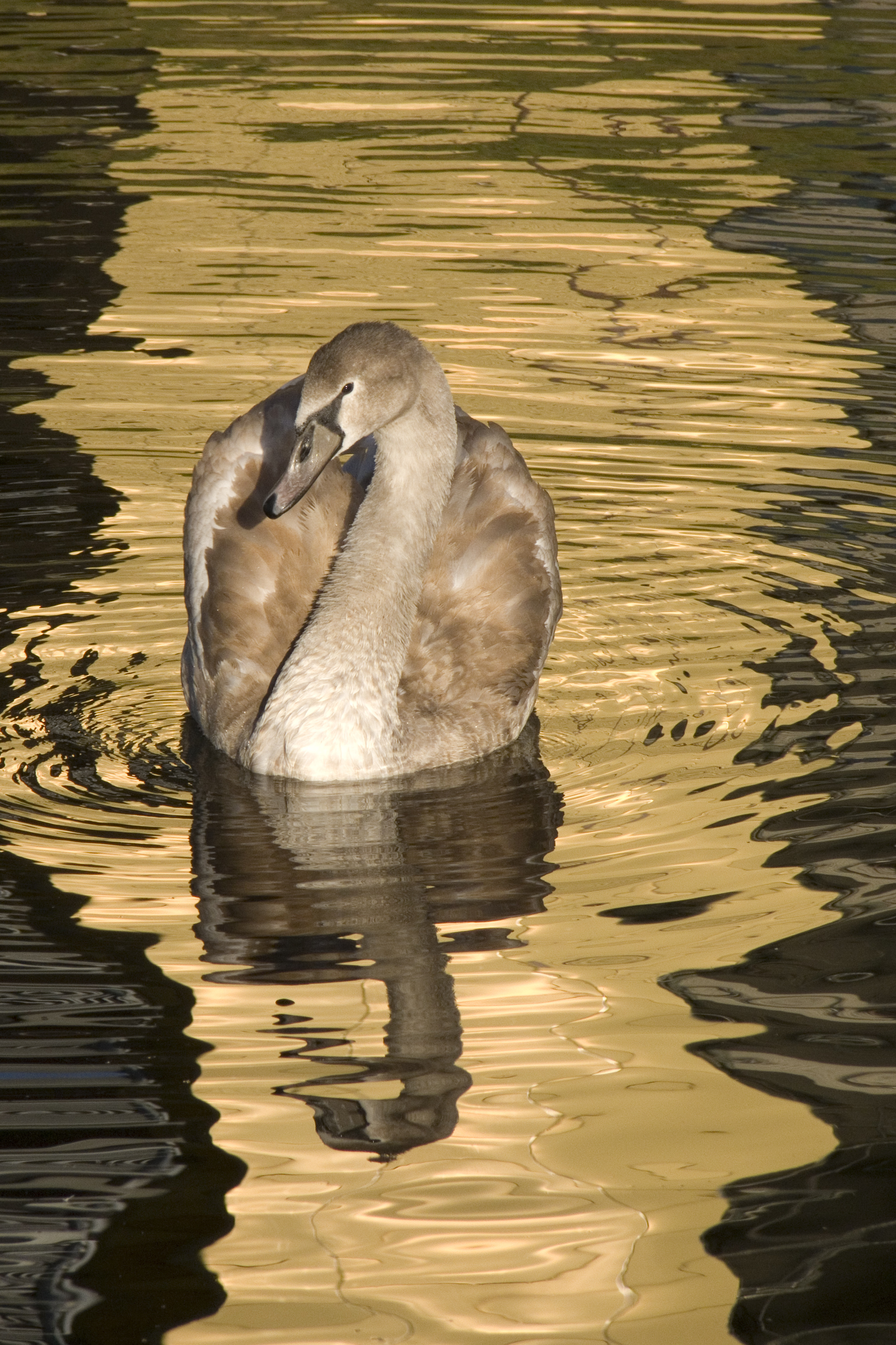 Zwaan in water met "gouden" kleur