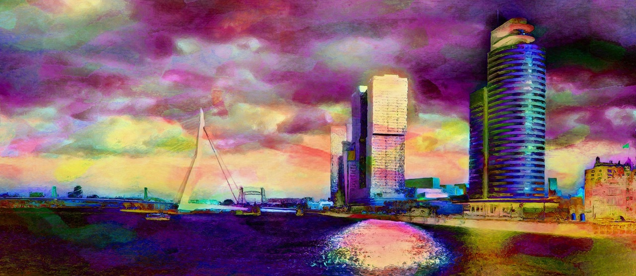 Figuratief Digitaal Kleuren Felle Haven Print Nederland Rotterdam Giclee