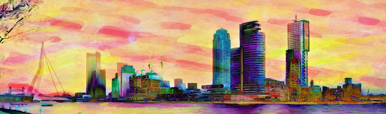 Rotterdam Haven Felle Kleuren Digitaal Giclee Nederland Print Figuratief
