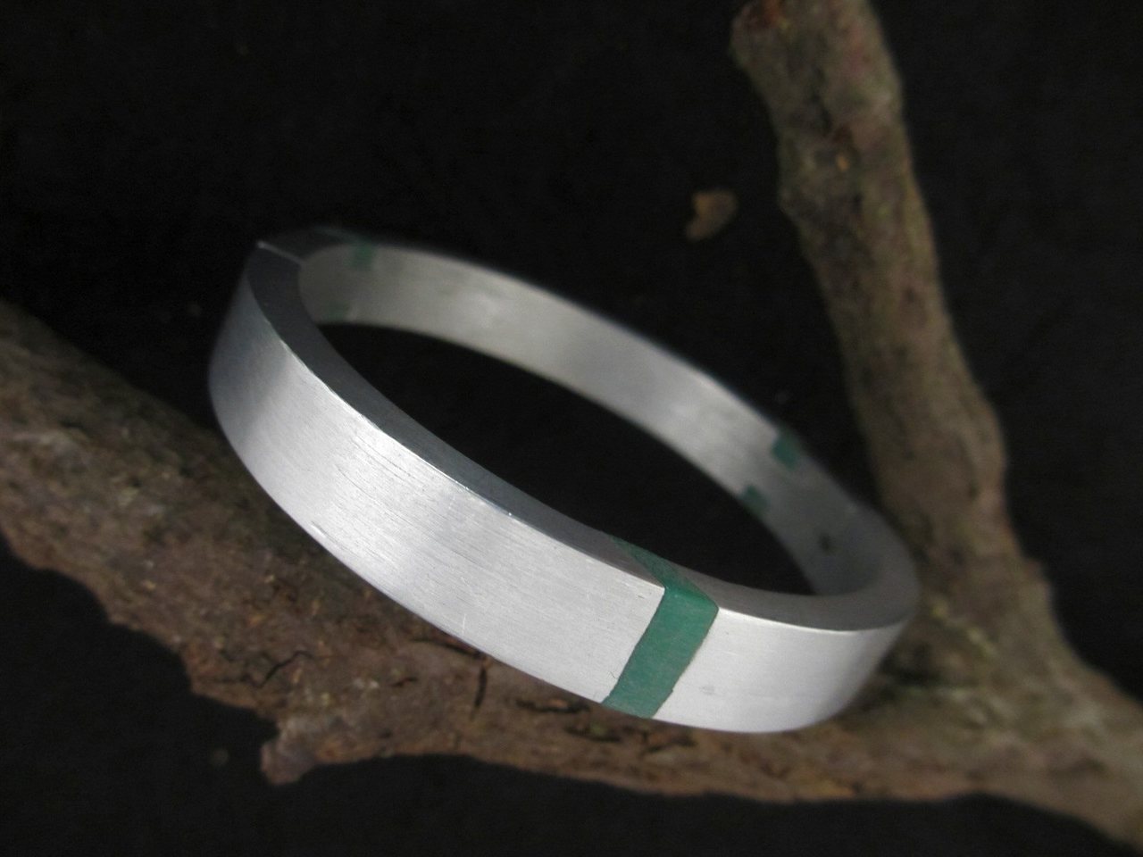 ronde aluminium armband met groene kunststof accenten. magneetsluiting. wordt op maat gemaakt