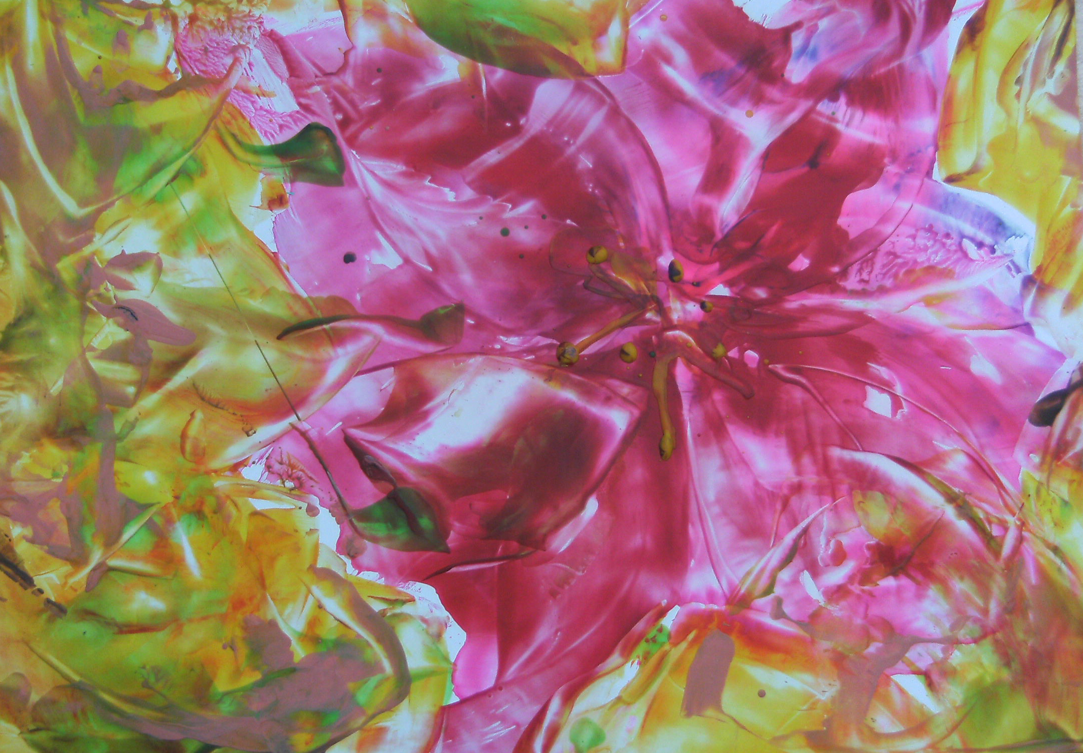Ik schilder intuïtief ,en gebruik als medium acryl op doek. Mijn werken zijn symbolisch van aard. Ik laat me leiden door de impressies van het moment.
