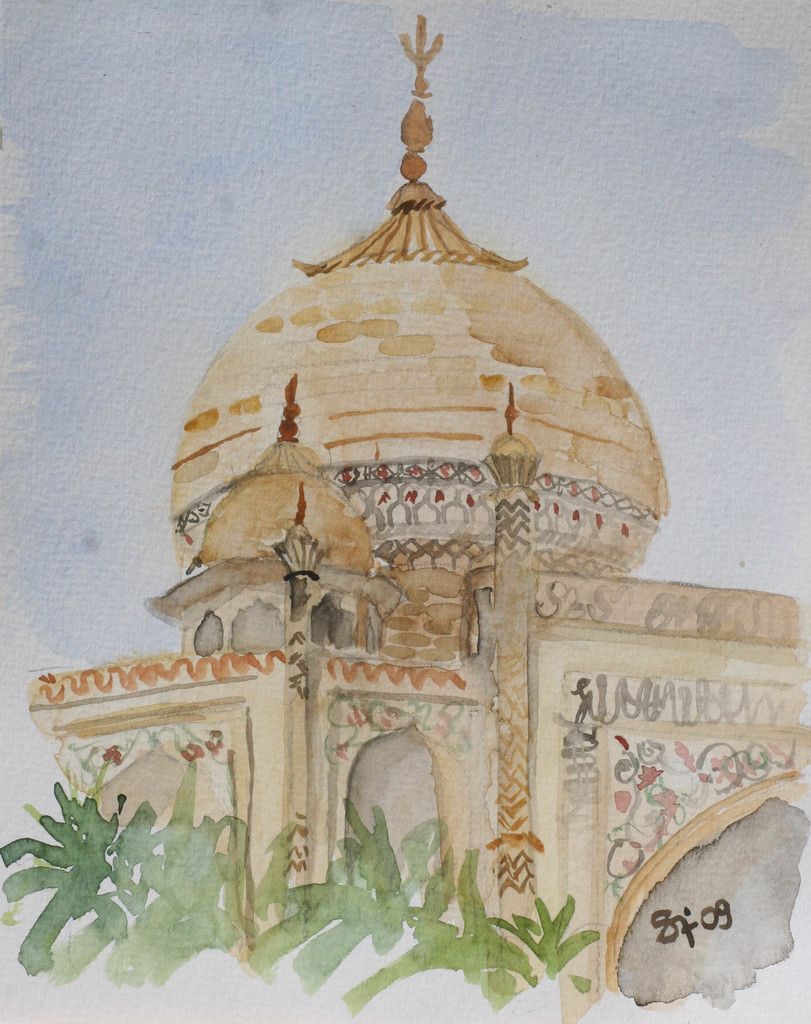 Aquarel New India Watercolour Tombe Mausoleum Graftombe Delhi Tomb Humayun