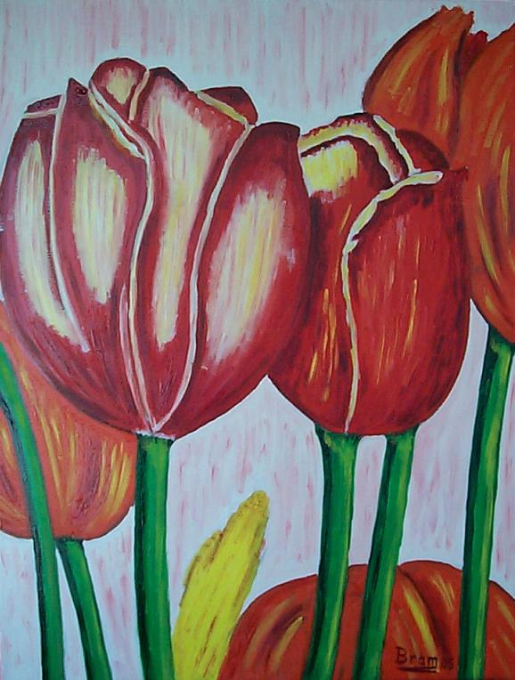Tulpen schilderij, de zijde zijn mee geschilderd dus een lijst is niet nodig.