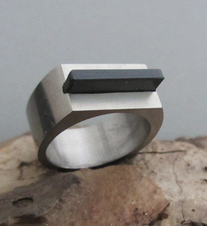 titanium ring met zwart kunststof inzetstukje. 8 mm breed