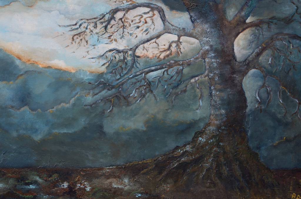 De kleuren van dit schilderij drukken de gevoelens die de herfst bij mensen op kan roepen.