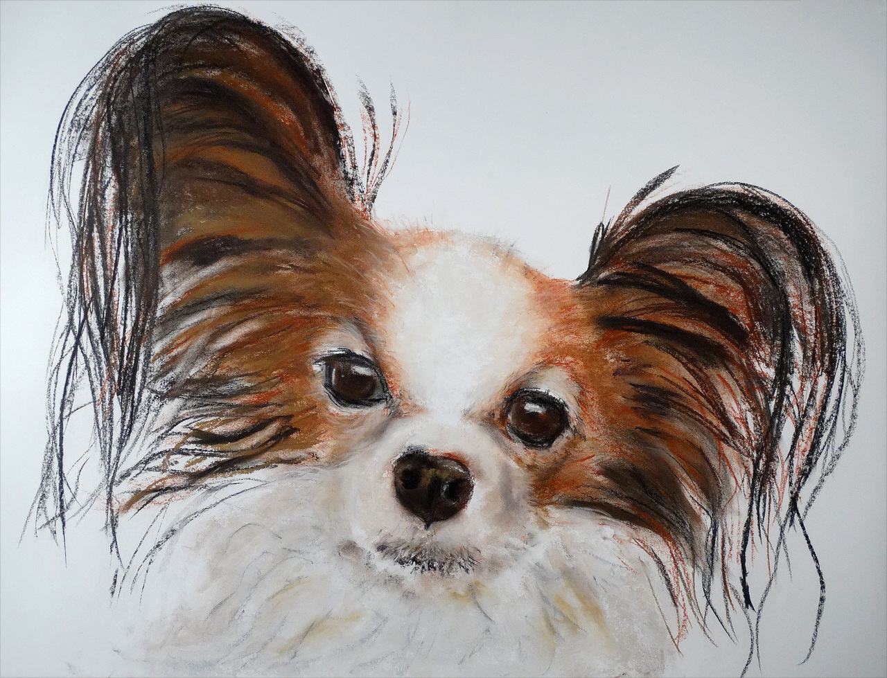 Portret Krijt Vlinder Hond Charcoal Papillon Xl