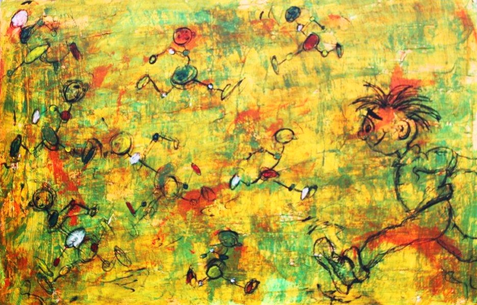 Hallo Het werk dat ik maak bestaat uit acryl en soms nog diverse mediums. De compositie is erg belangrijk voor mij. De innerlijke strijd om vlakken en kleuren in balans te krijgen is iedere keer de opgave maar zeker ook de uitdaging. Wat mijn uitgangspositie ook is; de sfeer en kleuren bepalen mijn uiteindelijke werk. Wat ik wil bereiken? Een gesprek met de kijker, een discussie aangaan, praten over kunst. Saskia Jacobs