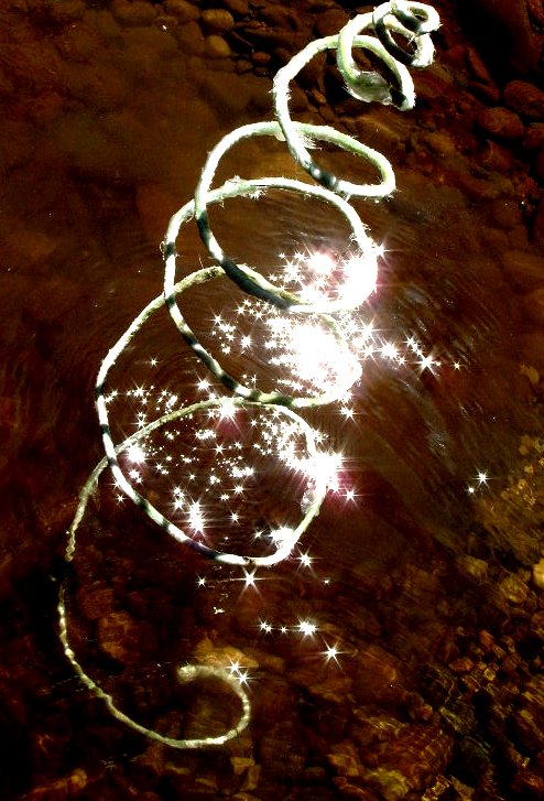 Spiraal gevormd door de lijn, hier gepresenteerd in het water van de Dordogne.