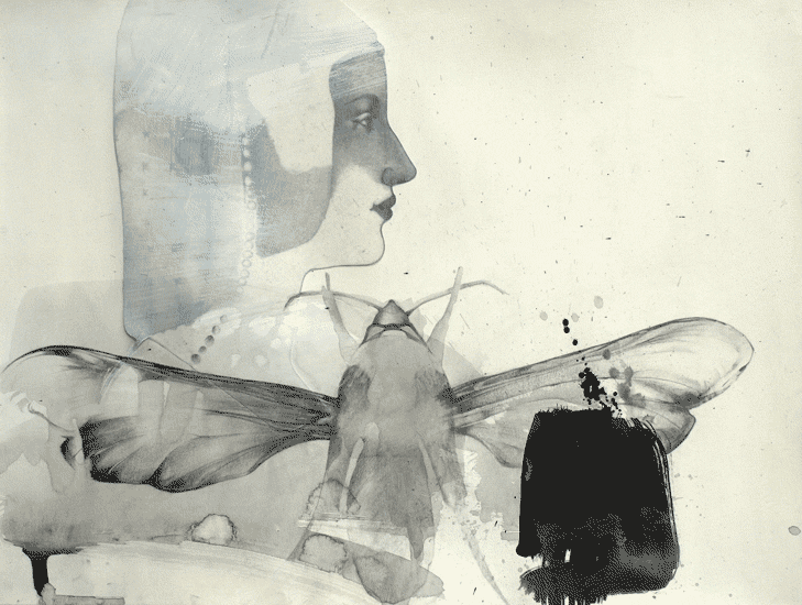 Het witte doek schrikt mij niet af. Daar creëer ik heel intuïtief een eigen wereld en komen mijn gevoelens en gedachten samen op het papier door middel van kleur, vorm en lijnen. Een eigen vormentaal en een sfeerbeeld van mijn eigen ik. Sfeer is belangrijk, beelden die emoties teweegbrengen. Ik gebruik mijn materialen heel intuïtief en ze komen gelaagd op het werk- vlak. Heel spontaan worden de kleuren, vormen en lijnen gebruikt vanuit een buik gevoel. Het is een spannend gebeuren om het werk laag na laag op te bouwen tot een esthetisch beeld. Het maken van een werk is bij mij telkens een sprong in het duister. Als ik ermee begin weet ik nooit wat het gaat worden en wat de onderliggende gedachten en ideeën zijn. Ik stuur mezelf een richting uit, onbewust maak ik een beeld dat als ik h