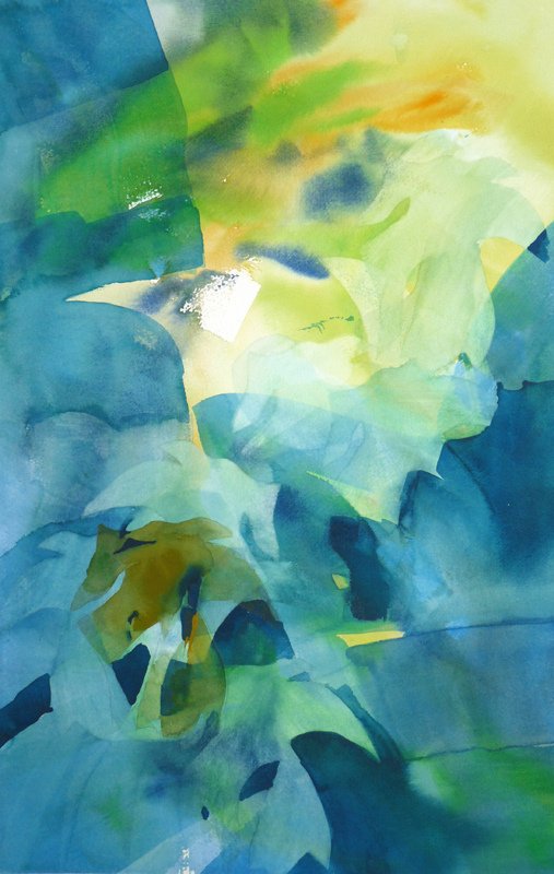 Tijdens het wandelen in de tropische bossen van Nieuw Zeeland raakte ik gefascineerd door het heldere felle zonlicht dat door de bomen naar binnen probeerde te dringen. Onder invloed van die lichtval zag ik ‘sprankelende kleuren’ (o.a. een heldere blauwtint).