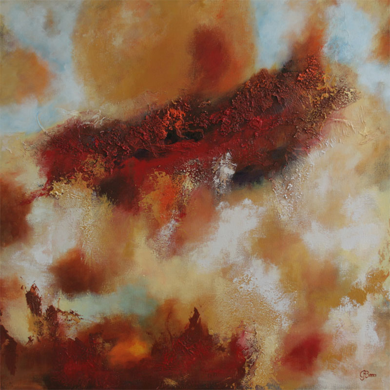 Oranje Landschap Spiritueel Bruin Gemengde Techniek Abstraherend Vergezicht Bloesem