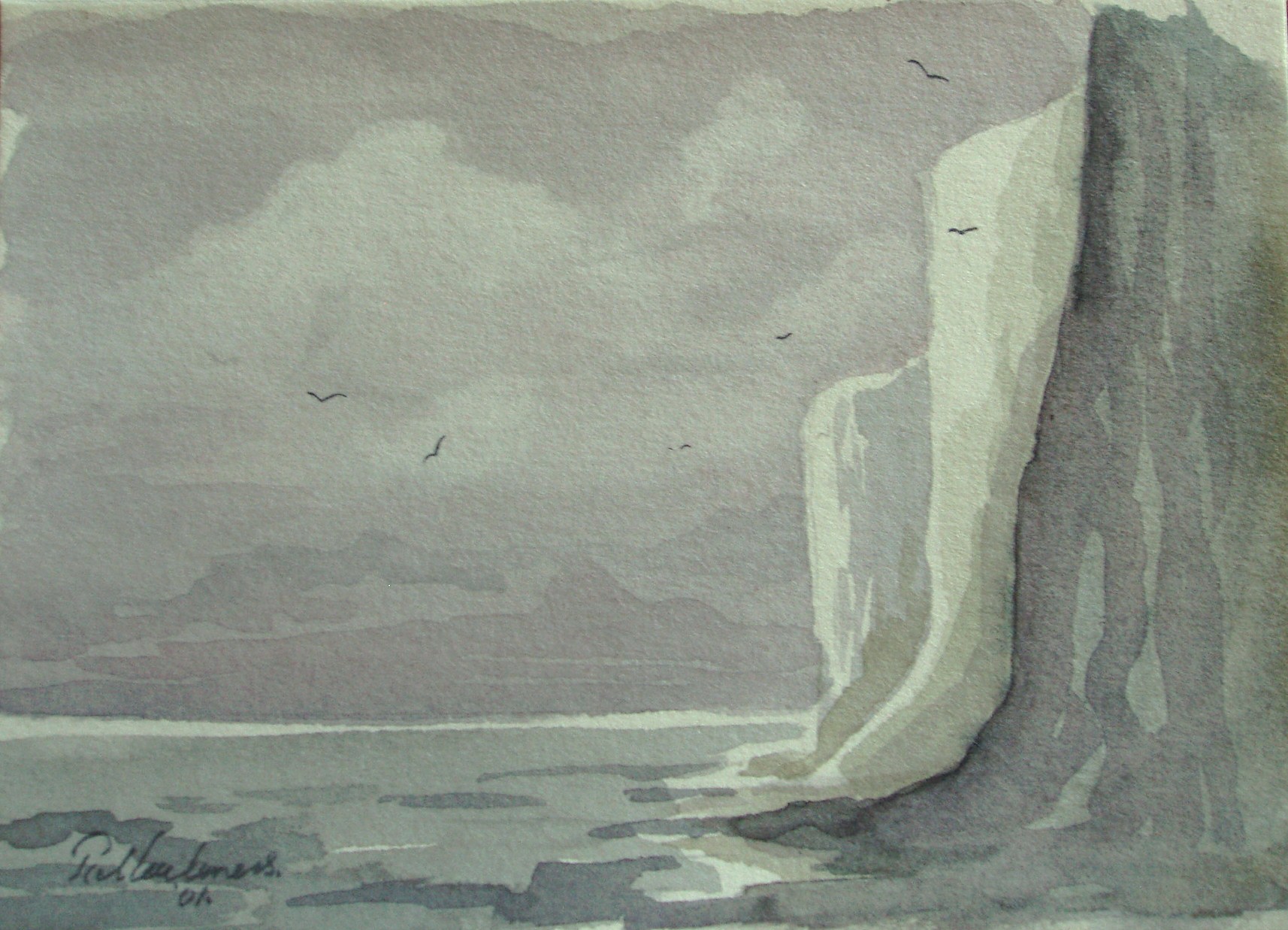 Rotsen Zee Vogels Aquarel Romantiek Realisme