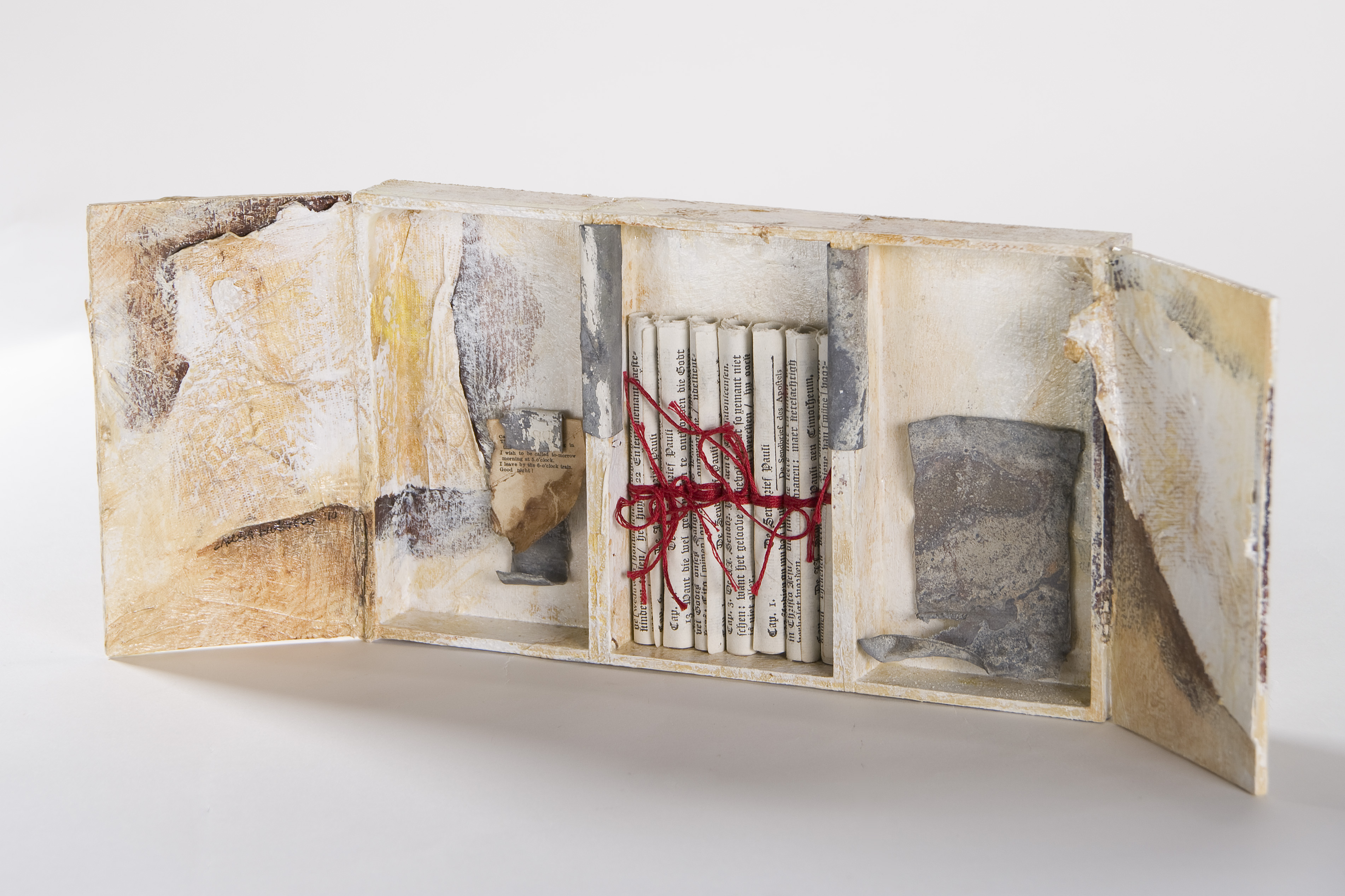 hout, papier, lood, tyvek, textiel, acryl foto: Tineke van Wegberg