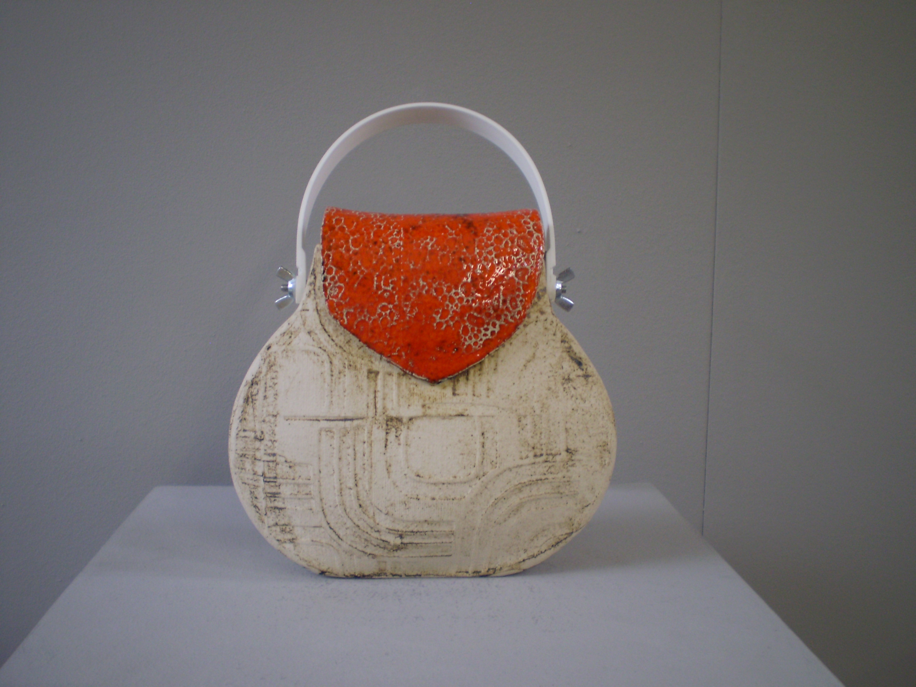 tas, keramiek...handgevormd, bewerkt met oxydes en glazuur.