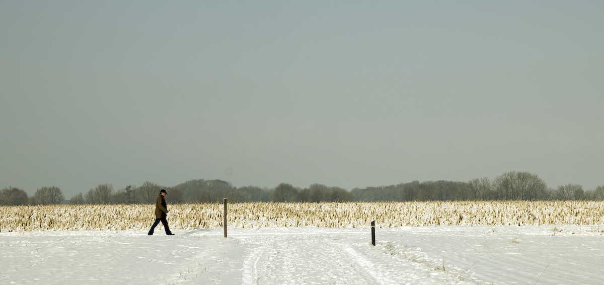 Wandelaar in de buurt van Merkelbeek foto is inclusief passepartout