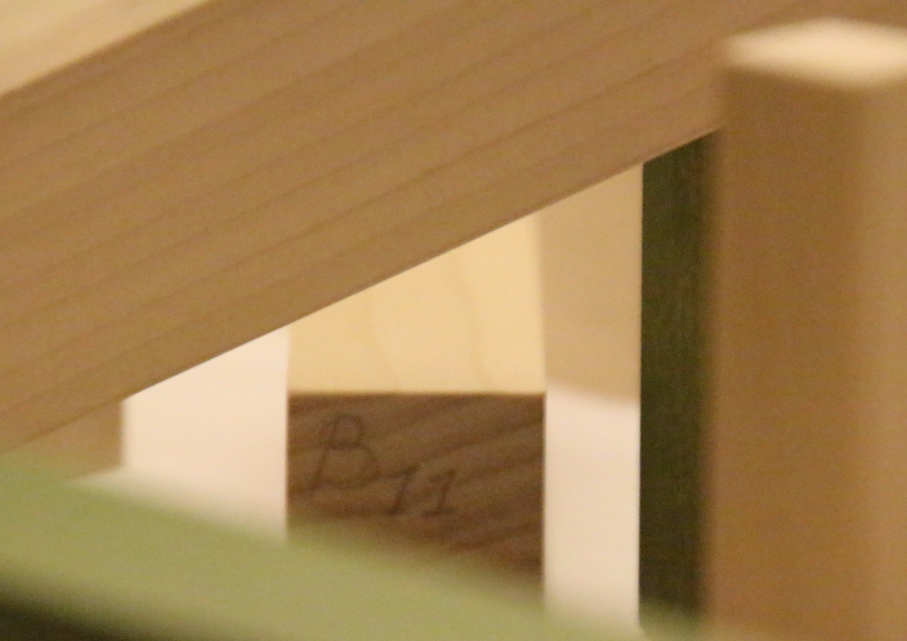 Close-up beeld van houten blokken als onderdeel van een installatie. Op foamboard (diep 0,5 cm). Oplage van 6.