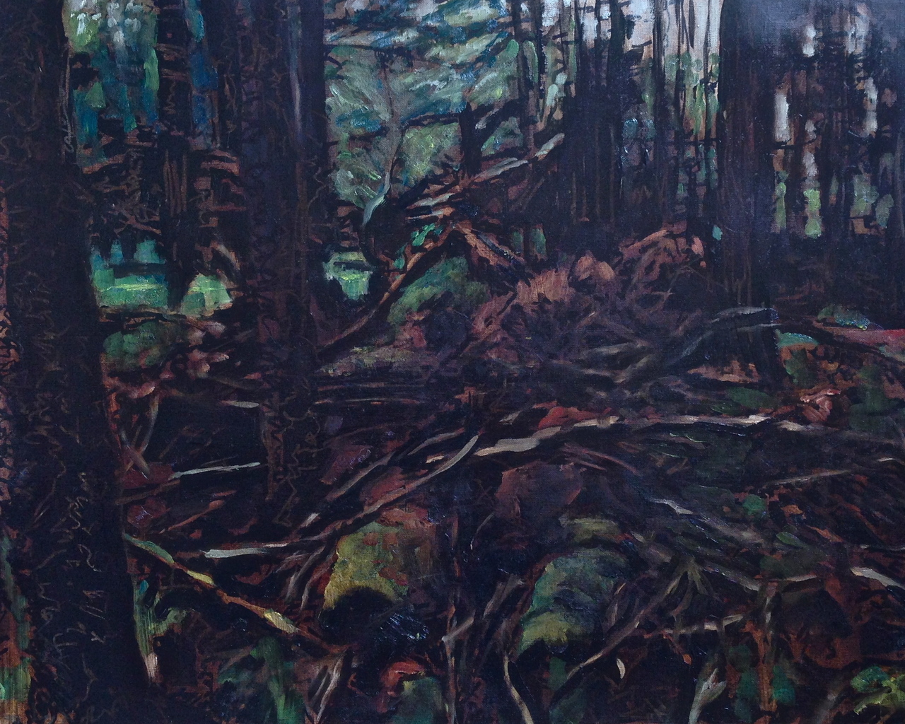 Mijn grote liefdes is schilderen naar waarneming; (zelf)portret en vooral bos en bomen. En plein air; bijna dagelijks ben ik in het bos om te schilderen.
