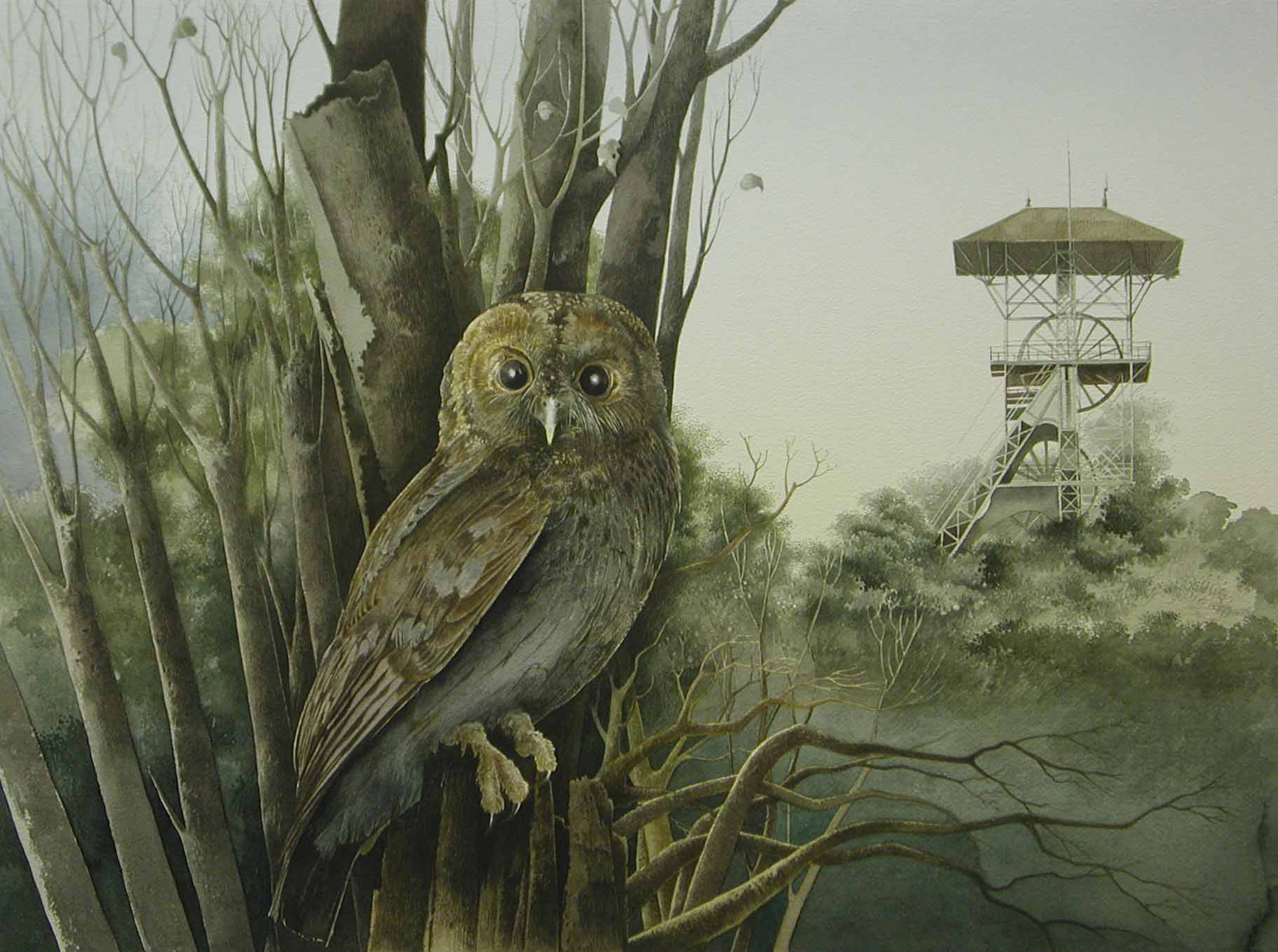 Hoewel duidelijk tekenachtig beschouw ik mijnaquarellen toch als schilderijen. Het werk is ontstaan in een serie aquarellen die in zijn totaliteit "Oud hout" heet. Deze titel is ontstaan omdat deze aquarellen - 8 in totaal - allemaal een dominerende achtergrond hebben van een ongeremd groeiende natuur. De cultuur - altijd eindig - moet uiteindelijk wijken.