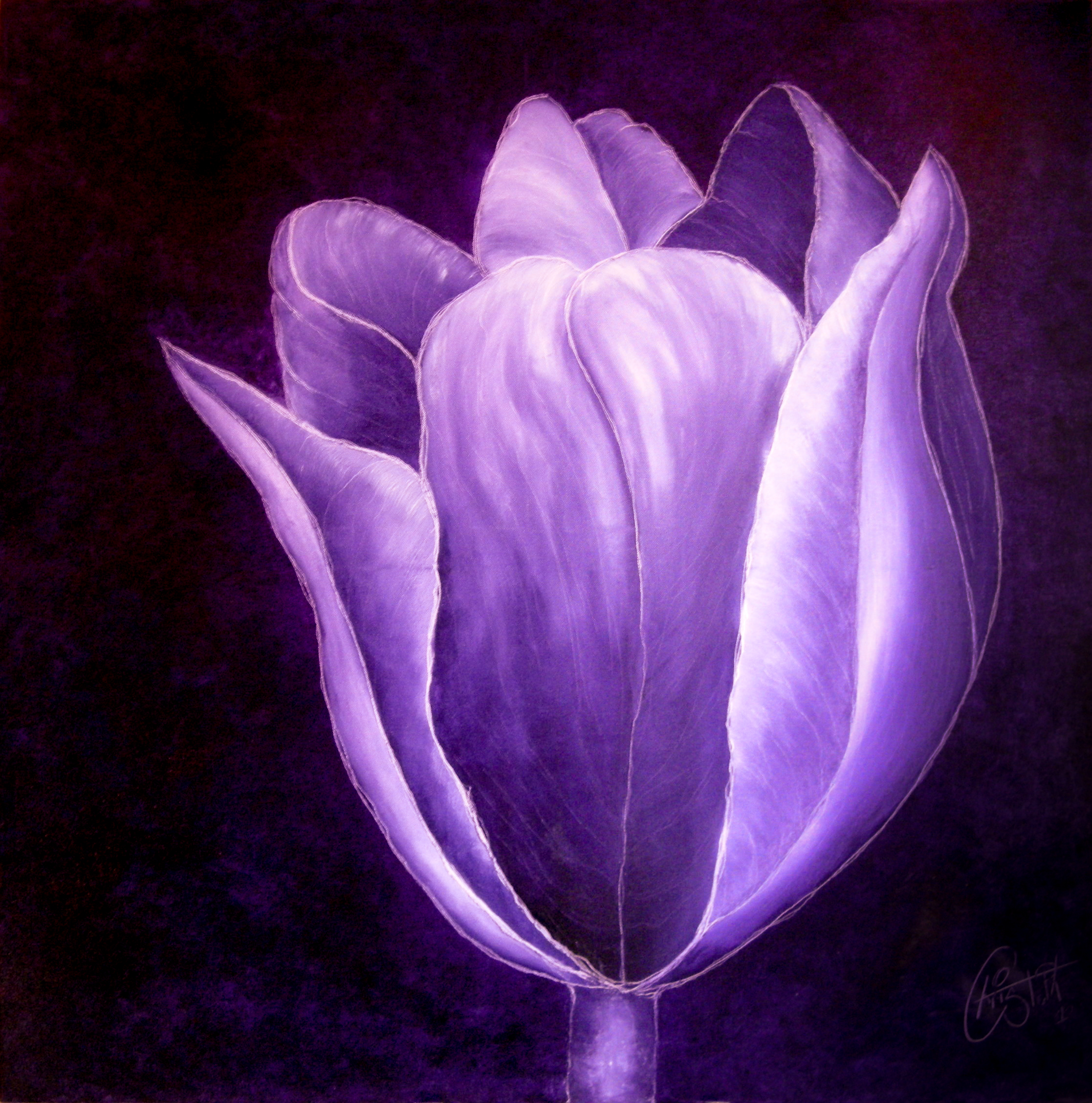 Paars Tulp Bloemen Canvas Doek Acrylic Black Purper Flowers Tulip Realisme Lila