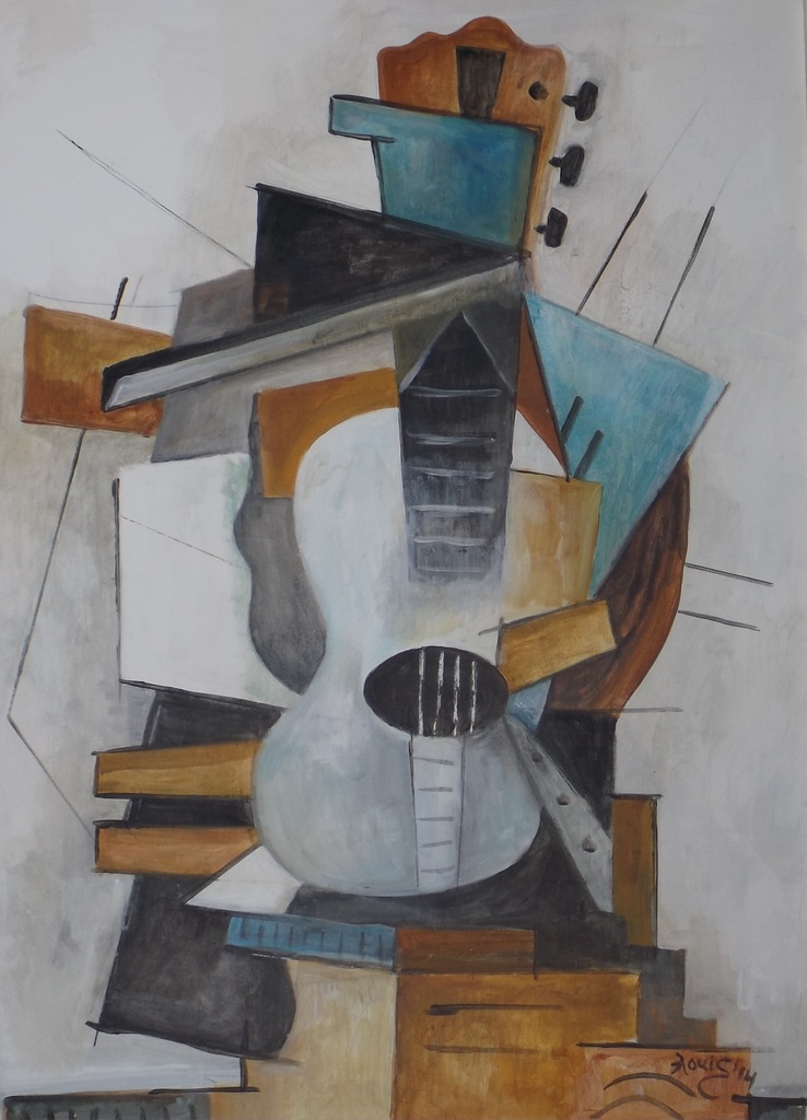 Een kubistische impressie van gitaren