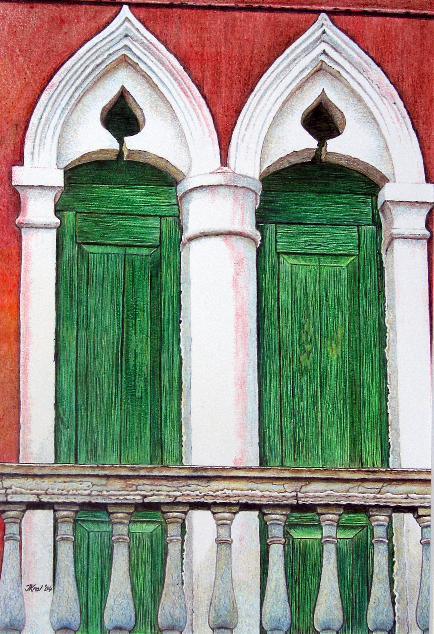 Groen Realistisch Deur Kleurpotlood Venetië Paleis
