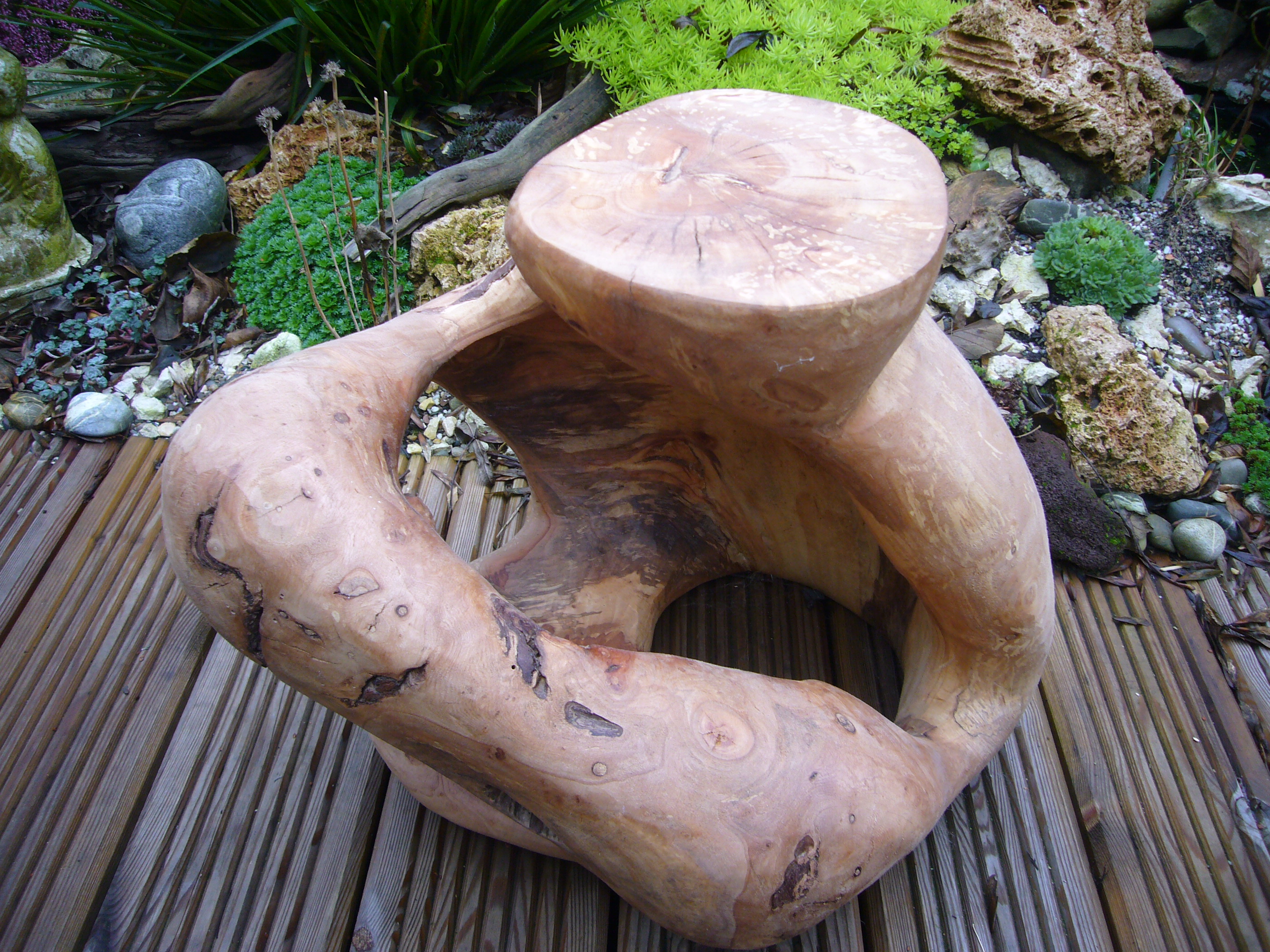 Hout is altijd al mijn favoriete materiaal geweest.Het is een mooi,warm en natuurlijk materiaal.Ik vindt het iedere keer weer een uitdaging om aan een nieuw stuk hout te beginnen,en me te laten leiden door wat het hout me geeft.