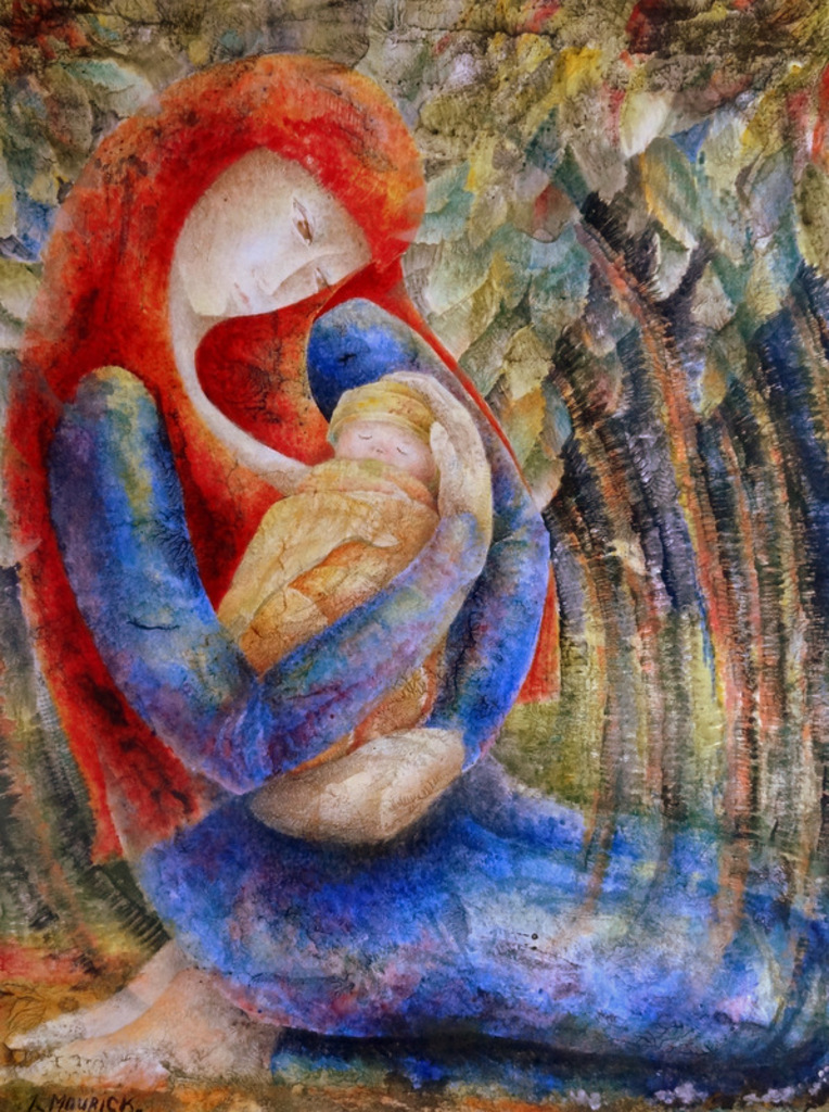 Acryl Spiritueel Kind Papier Acrylic Moeder Mother Child Maria Paper Jesus Jezus Icoon Spiritual Icon Care Zorgen Take Orietal