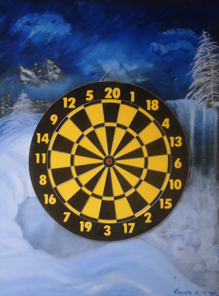 Potje Darten? Dit schilderij kreeg mijn man van mij toen we elkaar nog niet zo lang kenden. Hij heeft er overigens nooit op gedart. Niet dat ik dat erg vind... :-)