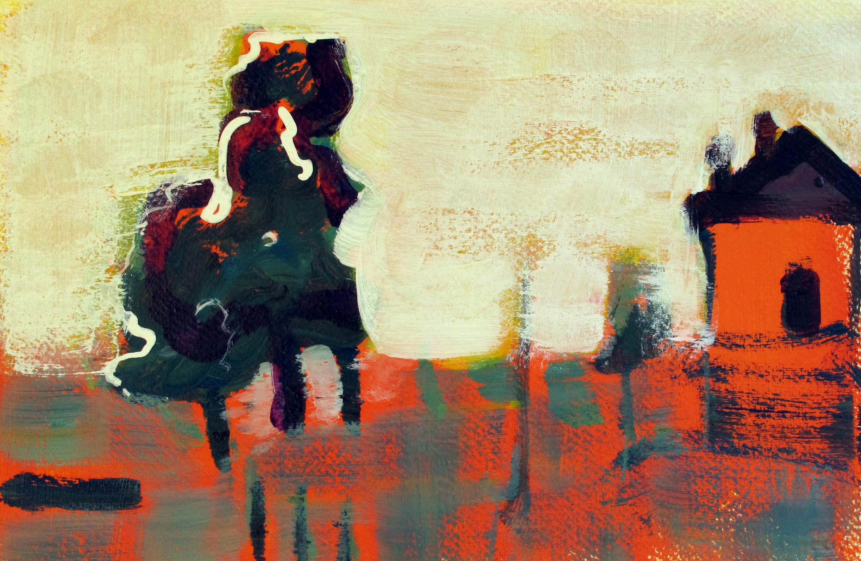 Huis Landschap Geabstraheerd Boom Landscape Tree House Heuvel Gestileerd Hill Orange Oranje