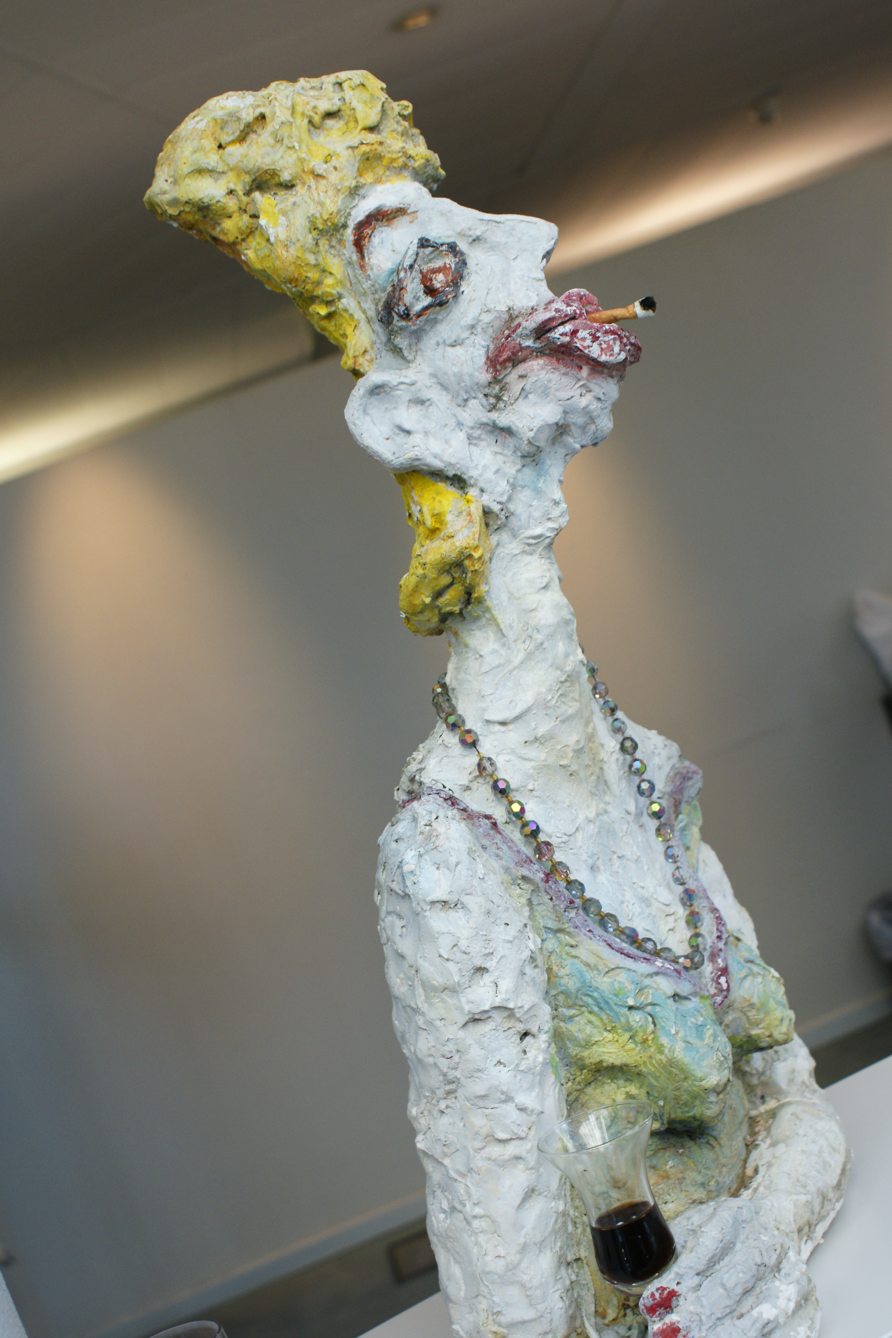 Een tragikomisch figuur. Vertoont opvallend veel overeenkomsten met de maakster.