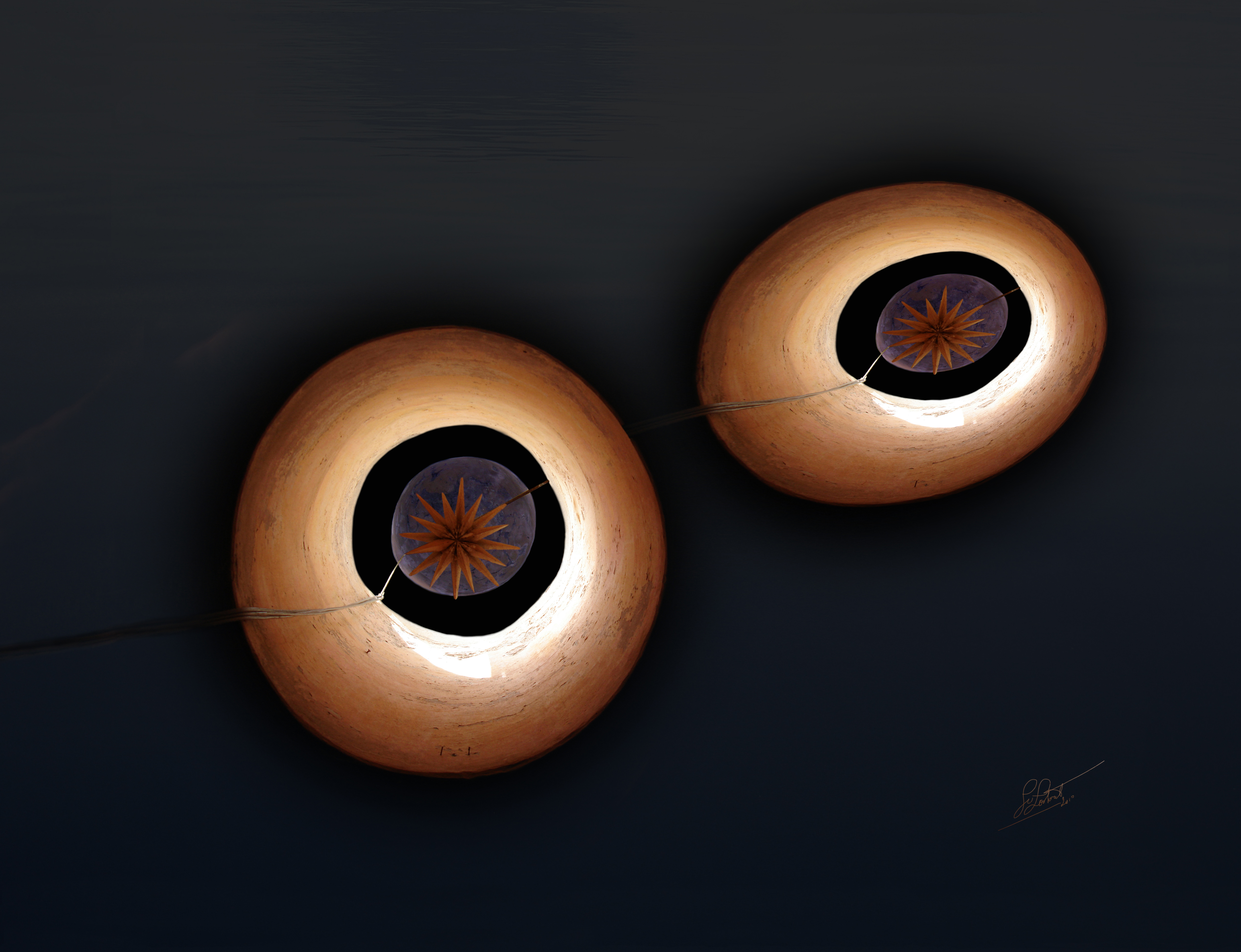 Abstract Oranje Zwart Ballon Licht Ogen Lucht Nacht Donker Touw Rondingen Kracht Lamp Vliegen Vormen Zweven Ster Luchtig Heelal Sterren Oer Minimaal Hangen Vastzitten Komeet