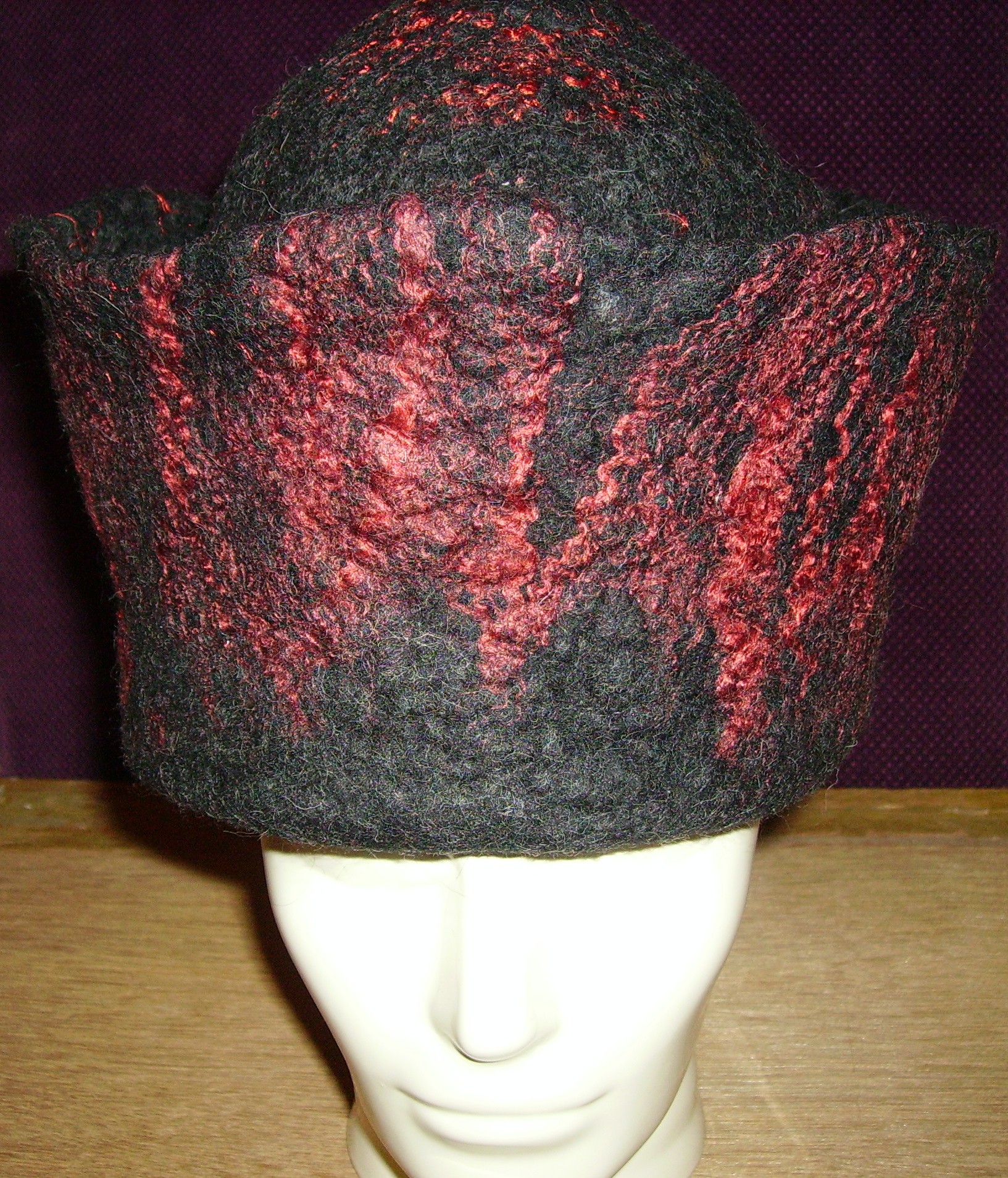 Zwarte hoed met rode zijde vezel