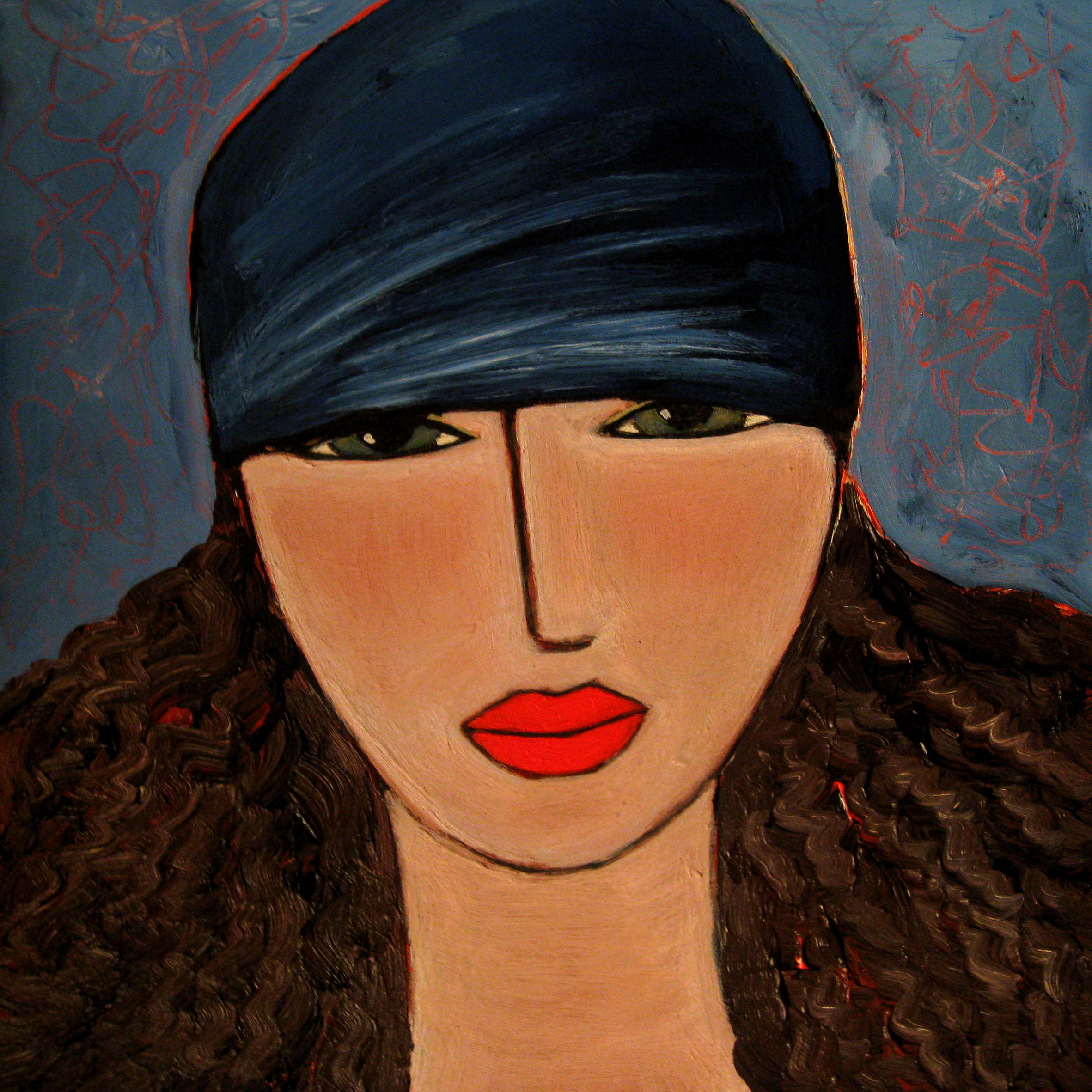 Schilderij Meisje Rood Blauw Blue Portrait Red Girl