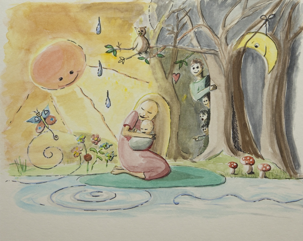 Opdracht om een geboortekaartje te maken met specifieke wensen: man en 3 kinderen moeten erin verwerkt worden. En het moet passen bij een gedichtje van Hans Hagen (wind, water, bliksem en donder, vuur, kou, wijde wereld, etc.)