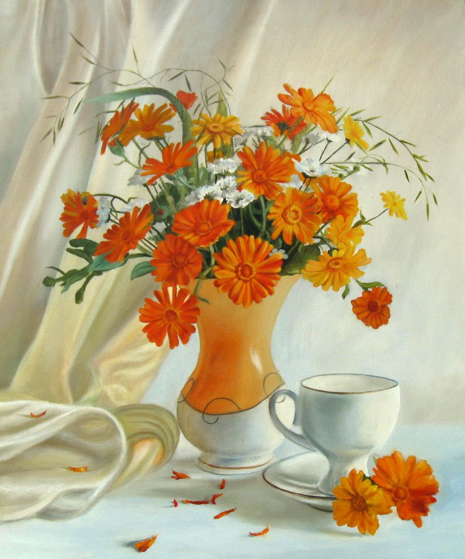 Bloemen натюрморт Goudsbloem Блум Schilderen Виталий Курортный