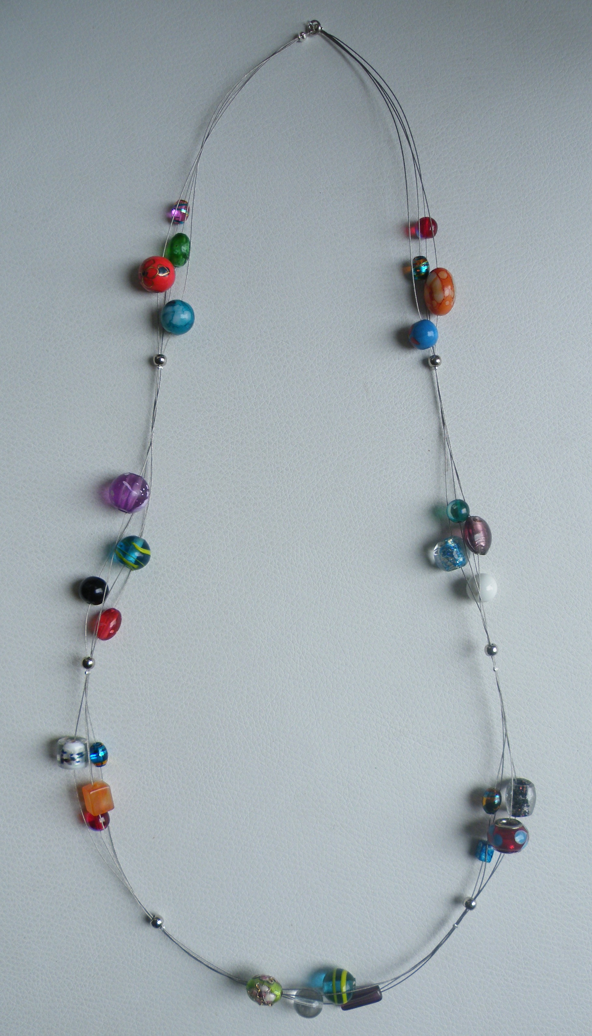 mooi kleurig sieraad met glaskralen op staaldraad