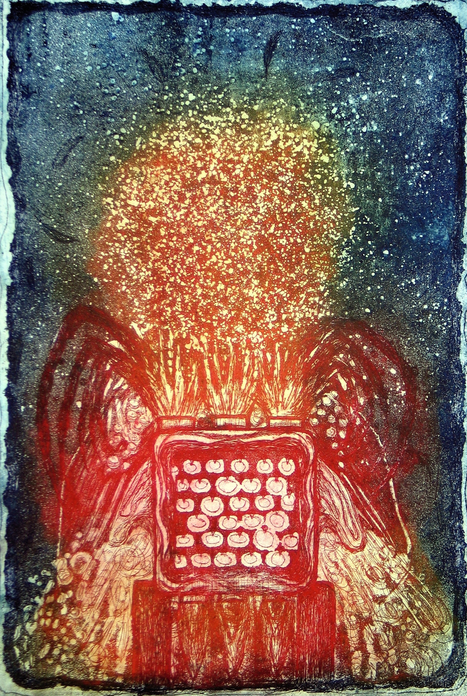 Grafiek Architectuur Gebouw Aquatint Explosief Vuurwerk Kleurenets