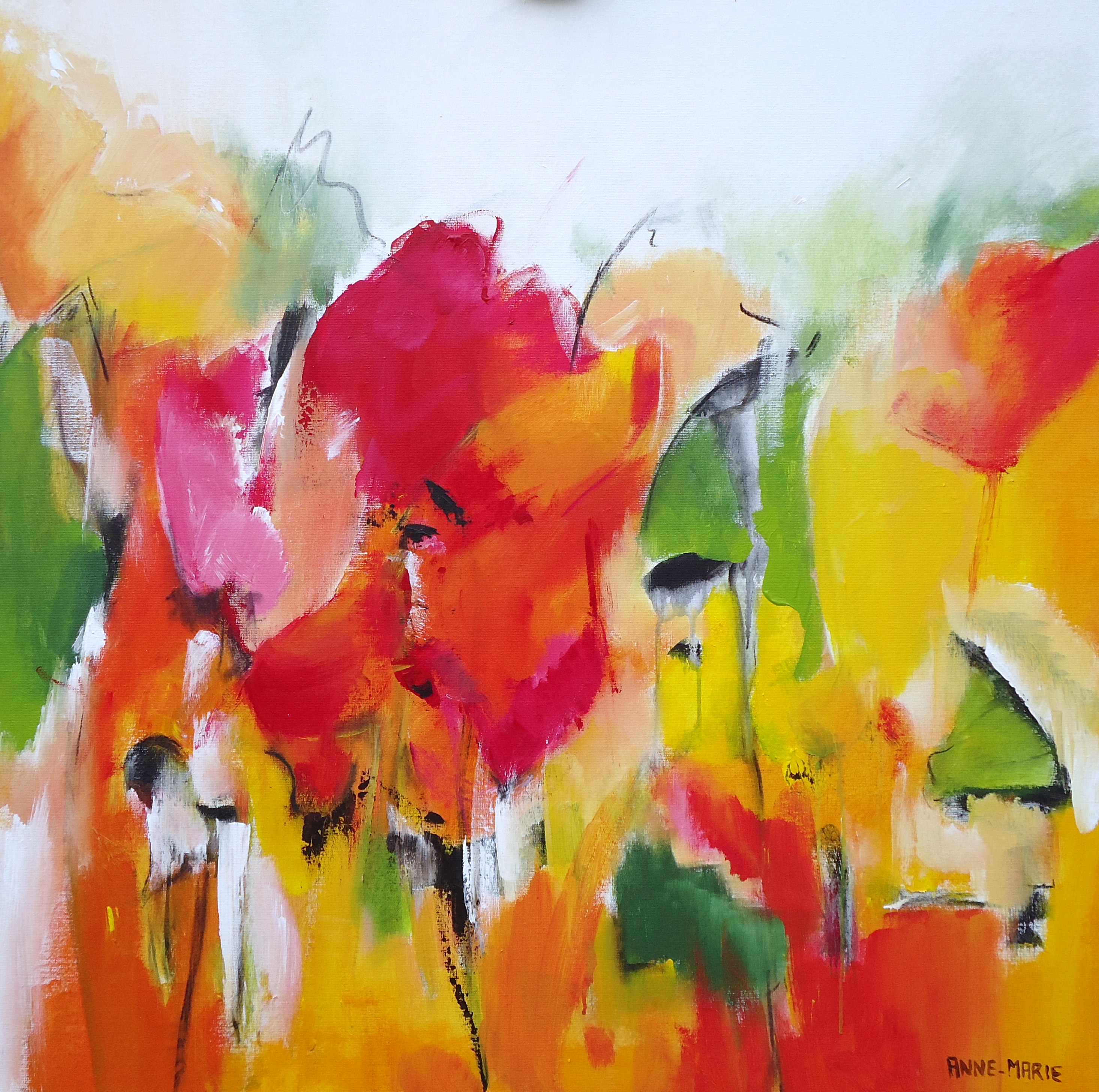 Welkom op mijn website. Ik schilder vnl. met acrylverf op grote doeken en werk met vrolijke, heldere kleuren. Mijn werk is figuratief abstrakt. Vooral mensen en bloemen inspireren mij tot schilderen.