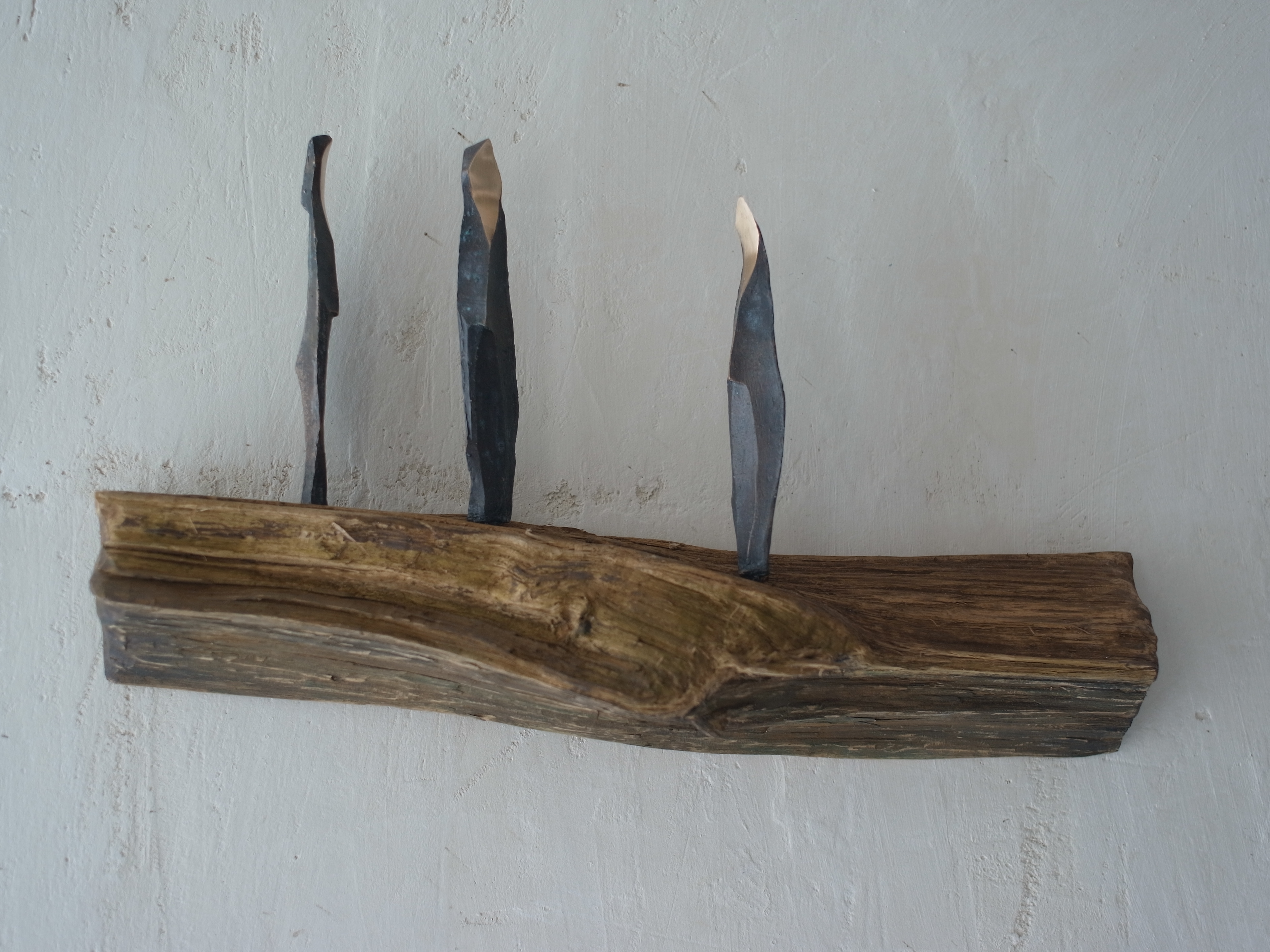 in dit beeld van brons en hout zie je drie gesluierde vrouwen onderweg, hun gezichten lichten op..........this sculpture in bronze and wood shows three women with a veil, their faces brightened