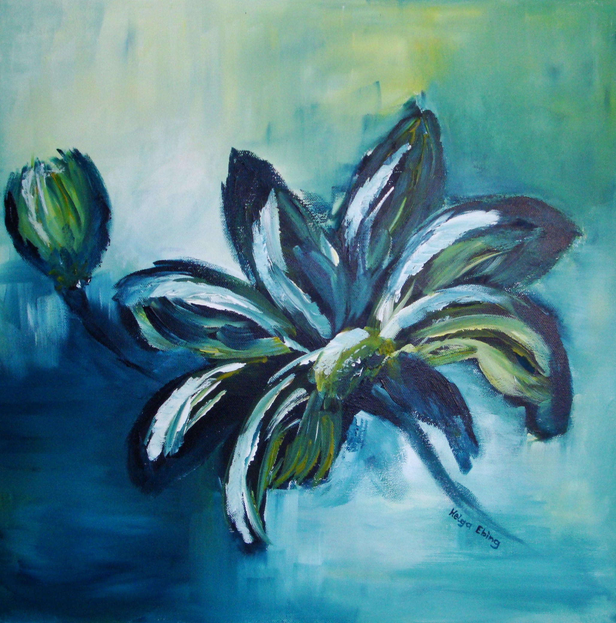 Mijn naam is Helga Ebing, geboren 1958 te Hoogland. Ik werk met acryl op doek en linnen en maak met paletmes, spons en o.a. mediums structuur in mijn werk. Mijn werk varieert van realistisch tot figuratief. Inspiratie haal ik uit mijn omgeving en reisbestemmingen.
