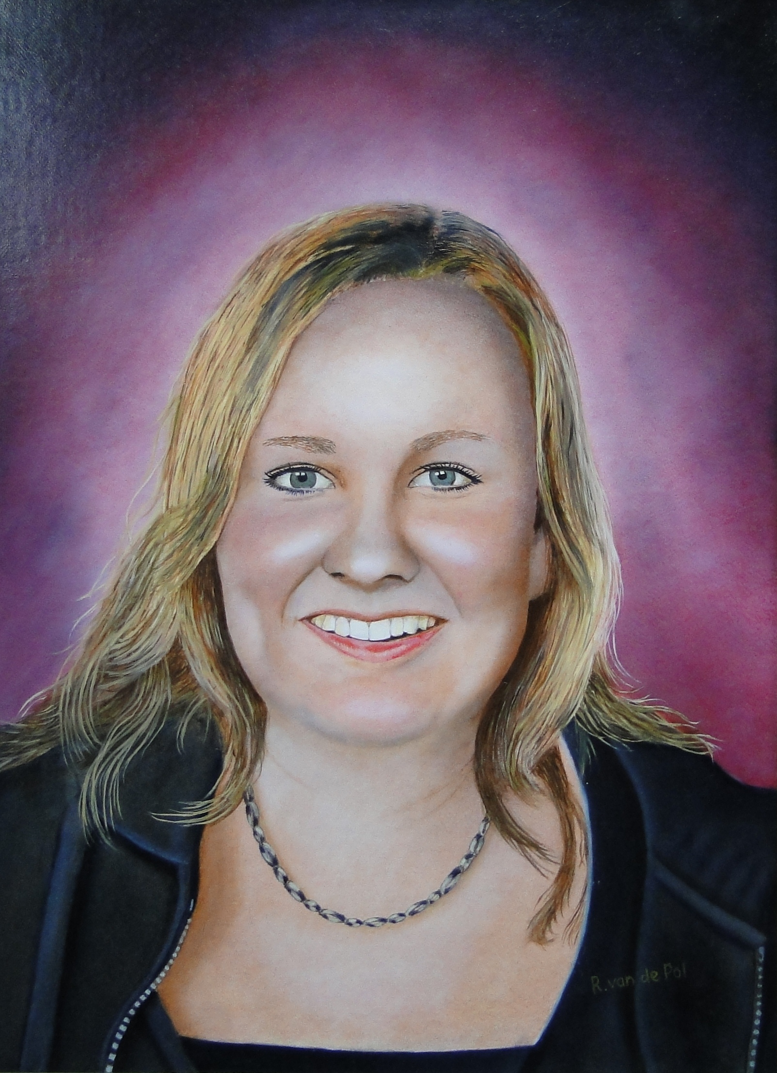 Gerrianne heb ik geschilderd vanaf een foto en op een glacerende manier gemaakt