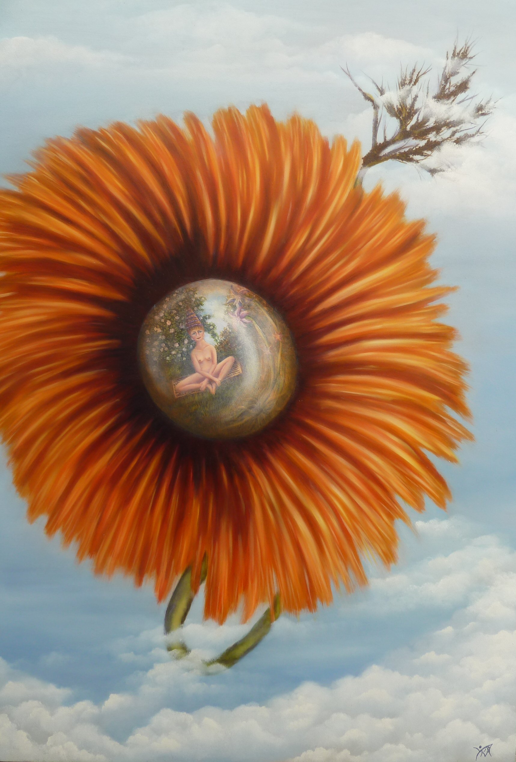 Bloem Boek Naakt Oranje Olieverf Spiritueel Verhalend