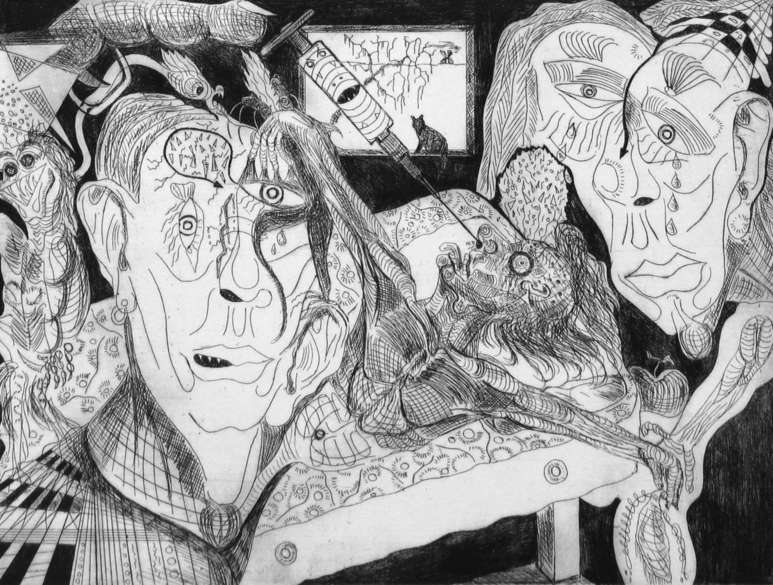 Grafiek Pijn Schedel Ets Gat Friesland Lijnets Boren Ziekenhuis Chirurg Litteken Diepdruk Kno Druktechnieken Wenkbrauw Spuit Ontsteking Drain Drainage Voorhoofdsholte Acuut Neusschot Sinusoperatie Zwartwitets
