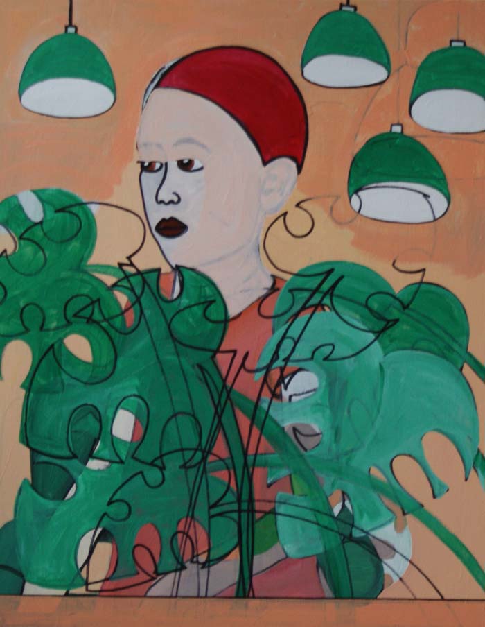 Schilderij Groen Portret Acrylverf Plant Anja Petje Kok Gorinchem Vingerplant