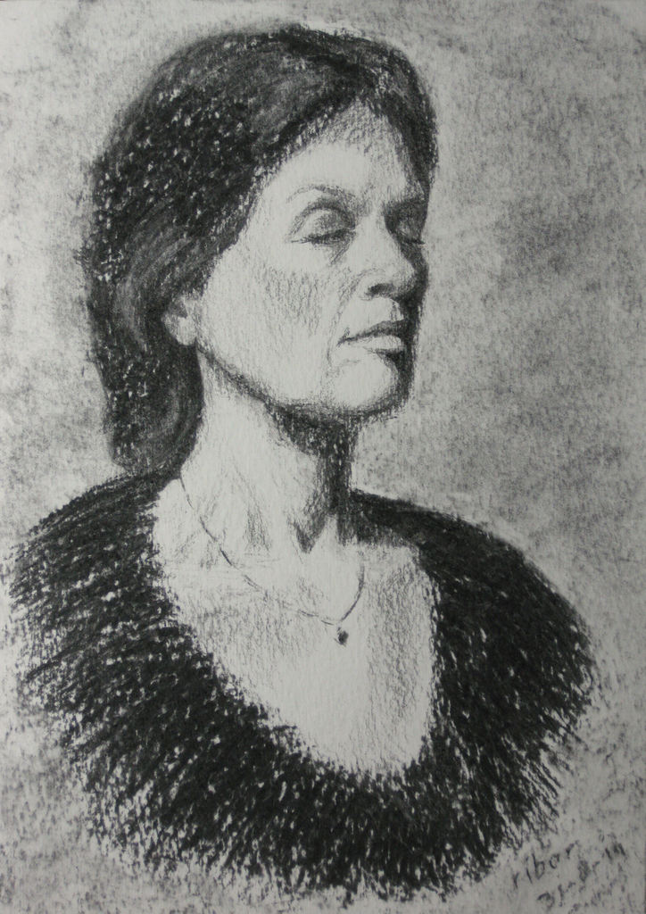 Portret Portrait Houtskool Meditatie Zelfportret Contrast Charcoal Moment Self Zelf Meditatief Meditative