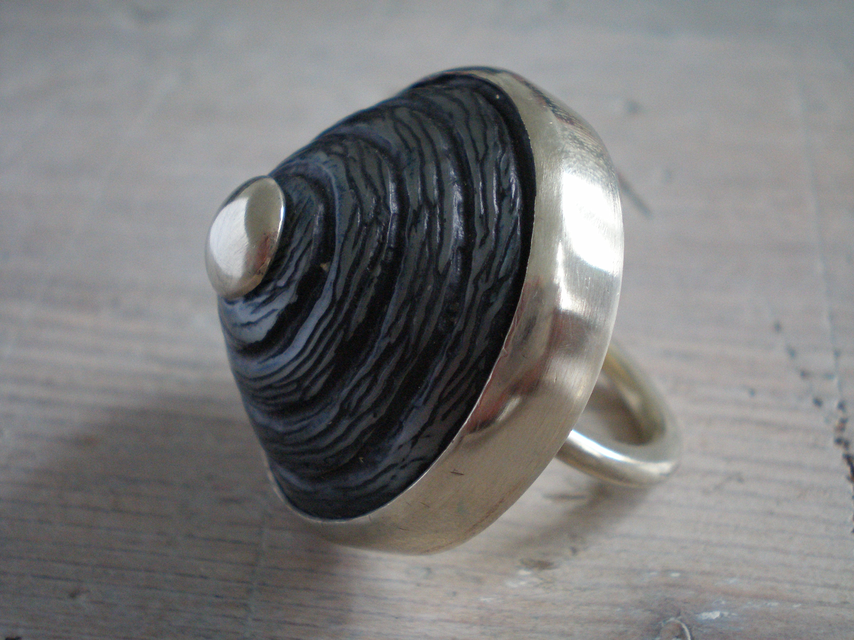 ring van alpaca met blauweknoop